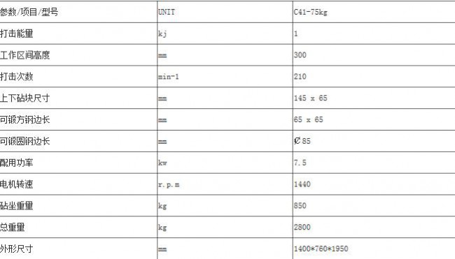 | 產品規格: | C41-75kg分體式空氣錘 | ||