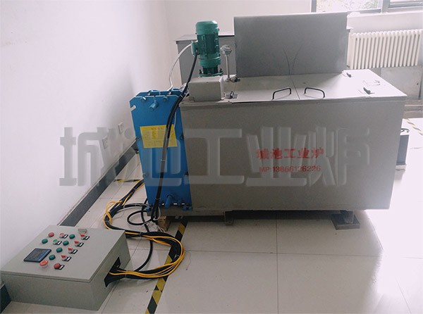 外熱式硝鹽爐鹽浴爐由爐體、不銹鋼坩鍋、電熱元件和自動控溫柜組成,使用硝鹽進(jìn)行零件淬火、回火加熱、等溫淬火冷卻,液體化學(xué)熱處理等多種工藝,爐體由型鋼和鋼板焊接而成,爐面采用冷軋鋼板制成,爐襯采用節(jié)能超輕質(zhì)高強(qiáng)度耐火磚,夾層置硅酸鋁纖維,爐襯與爐殼之間填充保溫膨脹保溫粉,整個結(jié)構(gòu)為標(biāo)準(zhǔn)型節(jié)能爐襯,電阻絲采用較粗直徑高溫電阻絲繞成螺旋狀按照均溫布絲法,安置在爐襯的擱絲磚上,擱絲磚采用前部上翹20°防掉絲磚,電阻絲不易掉出。坩鍋采用耐熱不銹鋼板密焊制成。在坩鍋一側(cè)安裝由攪拌電機(jī),在坩鍋內(nèi)底部組成多孔導(dǎo)流孔,通過攪拌系統(tǒng)使鹽液快速循環(huán)上下左右翻騰,達(dá)到鹽液內(nèi)任何一點(diǎn)溫度均勻一致。硝鹽爐可通過自動控溫電柜的配合使用,可使淬火工件在很短時間內(nèi)快速冷卻到等溫淬火所需要的任何工藝溫度內(nèi)自動恒溫。