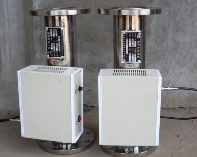 由主機產生高頻電場對水進行處理,使原有的大締合體狀態水的結合鍵被深度打斷,離解成活性很強的單分子或小締合體狀態的水,從而改變了水的物理結構與特性,增強了水分子的極性,增大了水分子的偶極矩,提高了水分子對鈣鎂離子、碳酸根離子等成垢組份的水合能力,起到阻止水垢形成的作用。同時,在變頻電磁場的作用下,使原有的水垢結晶體逐漸變得松軟、脫落、溶解,從而達到除垢之目的。