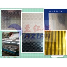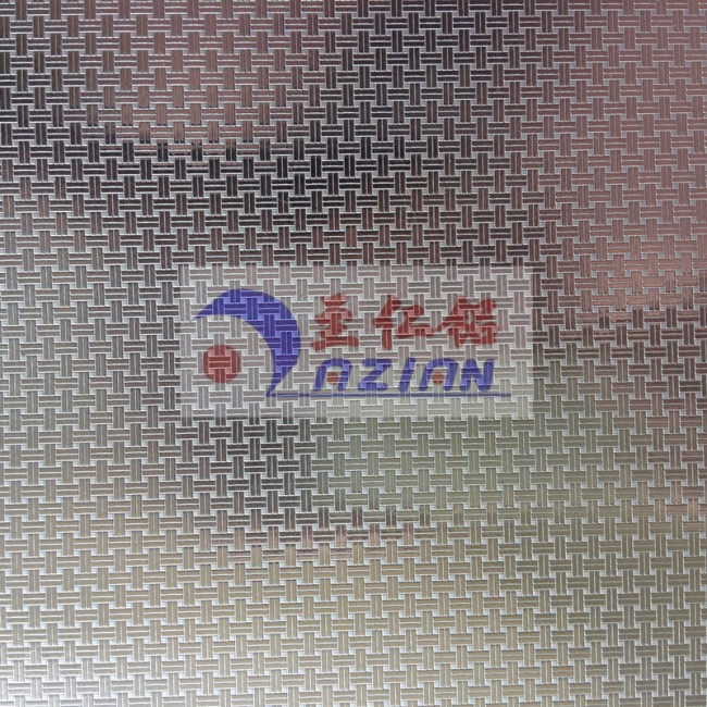 我司主要生產加工壓花鋁板,該花紋為編織紋花紋鋁板。該花紋鋁板是經過壓花、剪切、氧化、封孔、自然涼干等工藝過程,形成表面帶有一層致密的三氧化二鋁保護膜的優質壓花鋁板。它耐酸雨腐蝕性強于普通不銹鋼,具有持久的光澤和美觀的花紋。防腐涂層性能穩定,附著力強,不脫落,耐沖擊,無毒副作用,安全環保。產品表面整潔、光澤。電氧化以后可以消除鋁板表面殘留油污、人工搬運指印、輕微的劃傷、擦等。被廣泛應用于冷柜、冷庫、冰箱、紅酒柜、太陽能熱水器水箱反光板、裝飾鋁質品、燈飾、箱包、消毒柜、廚柜、中央空調通風管道、室內外裝修、機械設備外殼等行業。壓花后能夠增強鋁板的厚度、強度,可壓厚度為0.15mm—3.0mm、寬度最寬1.4m的鋁板。壓花之后鋁板可加厚0.1mm-0.25mm.尺寸可按客戶要求生產。
