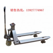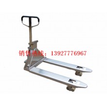 高起升手動液壓叉車秤是一種高起升裝卸和短距離運輸兩用車 ,由于不產生火花和電磁場。特別適用于汽車裝卸及車間、倉庫、碼頭、車站、貨場等地的易燃、易爆和禁火物品的裝卸運輸。該產品具有升降平衡、轉動靈活、操作方便等特點。工作安全可靠。是減勞動強度,提高生產效果,實現實全裝卸的理想工具。