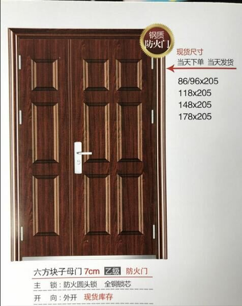 鋼質6方格現貨防火防盜門:帶下檻,帶包邊,尺寸如下: