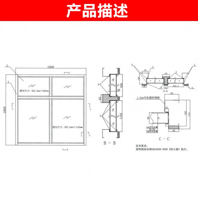 FHC鋼質防火窗,具體尺寸按照圖紙制作。