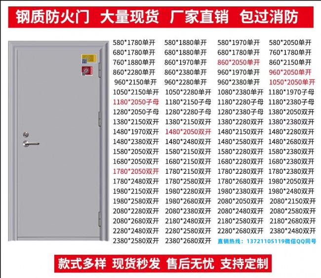 生產(chǎn)制作:鋼質(zhì)防火門系列,庫(kù)存防火門當(dāng)天極速發(fā)貨,木質(zhì)防火門系列,不銹鋼防火門系列,鋼木質(zhì)防火門系列,防火窗系列,防火卷簾門系列,學(xué)校防盜門帶氣窗帶視窗,KTV包廂防火門,酒店賓館客房防火門,配電房超大鋼質(zhì)甲雙防火門:尺寸做到3000×3000,乙單開防火門:1200×2400,玻璃防火門系列,全玻防火門系列,防火防盜門系列,膠合板門系列,三合板門系列,裝飾門系列,保溫門系列,智能防盜報(bào)警門系列,彩鋼門窗系列,塑鋼門窗系列,鋁合金門窗系列,鋼大門系列,密閉門系列,特種門系列,裝飾建筑門系列,另有多種工業(yè)提升門銷售。同時(shí)經(jīng)銷各種防火鎖,防火過(guò)道鎖,防火管井鎖,逃生鎖,防火閉門器,防火鉸鏈,防火插銷,防火順位器,防火玻璃等系列產(chǎn)品,可根據(jù)客戶需求定做。