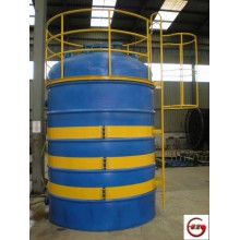 鋼襯塑儲罐是我公司在上世紀九十年代開發的防腐產品,產品是用滾塑工藝在碳鋼或不銹鋼儲罐內搪聚乙烯層達到一定的防腐效果,開發初期通過自制研究,從鋼網(龜甲)、襯塑層、管口等方面進行了長時間多次研發,產品質量逐步提高并穩定。