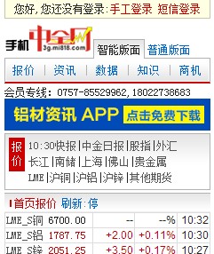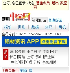 1、打開手機中金網首頁 3g.mi818.com 或 3g.metalsinfo.com